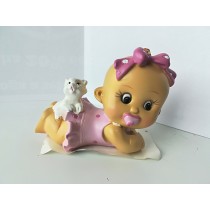 Figura de bebé a gatinhar com chupeta na boca. Disponível para menino ou menina. Ideal para decoração de bolos de batizado. Indique o modelo que pretende.