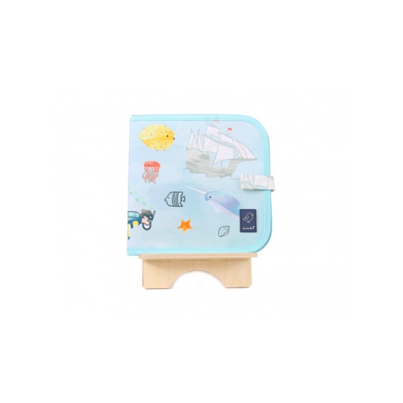 Desc. Técnica: Perfeito para: viajar e longos períodos de espera. Material Didáctico: Poliester PEVA, polipropileno. Ingredientes: Óleo de giz, titânio, pigmentos, ácido esteárico. Limpar com um pano húmido. Não colocar sob luz solar directa. Utiliza-se melhor com butterstick ou com os marcadores coloridos Jaq Jaq bird. Limpar sempre depois de utilizar, buttersitck pode manchar se deixar por alguns dias. Sem PVC, BPA nem Ftalatos. Fabricado na China Aviso: Perigo de sufocamento: peças pequenas. Não indicado para crianças com idades inferiores a 3 anos.